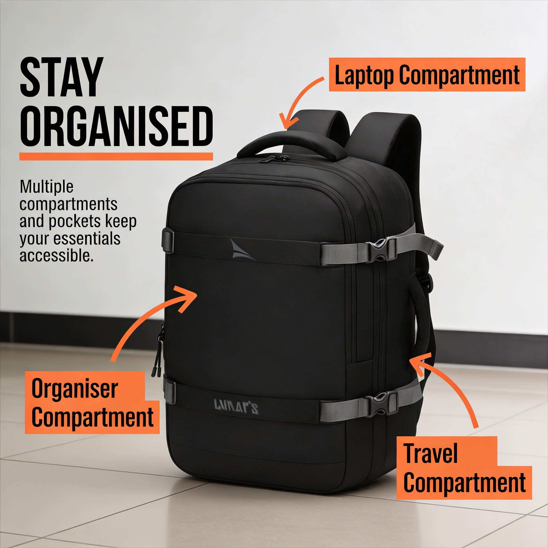 - 2 in 1 Overnight Weekender Expandable Bag - This Laptop bag can be used as a normal backpack and also as a travel suitcase. Features 180 degree opening main compartment